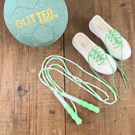 Freshen up their playtime with our Spearmint collection, a cool and vibrant assortment of products in a delightful, minty hue that's perfect for kids who love fun, fresh style! Featuring Spearmint glitter soccer ball, metallic shoelaces, rainbow tinsel braids, and soft bead skipping rope, this collection adds a pop of refreshing colour to every adventure. The crisp spearmint shade is not only eye-catching but also gives off a playful, candy-inspired vibe—making it the perfect way to add a sweet touch to their daily activities. Whether they’re scoring goals, skipping rope, or styling their hair with a touch of minty magic, the Spearmint Collection is sure to make them feel extra special. Ideal for birthdays, holidays, or just because, this fresh and fun assortment makes the perfect gift for kids who love to stand out. Shop now and treat them to the fun, cool, and candy-colored accessories they'll love!